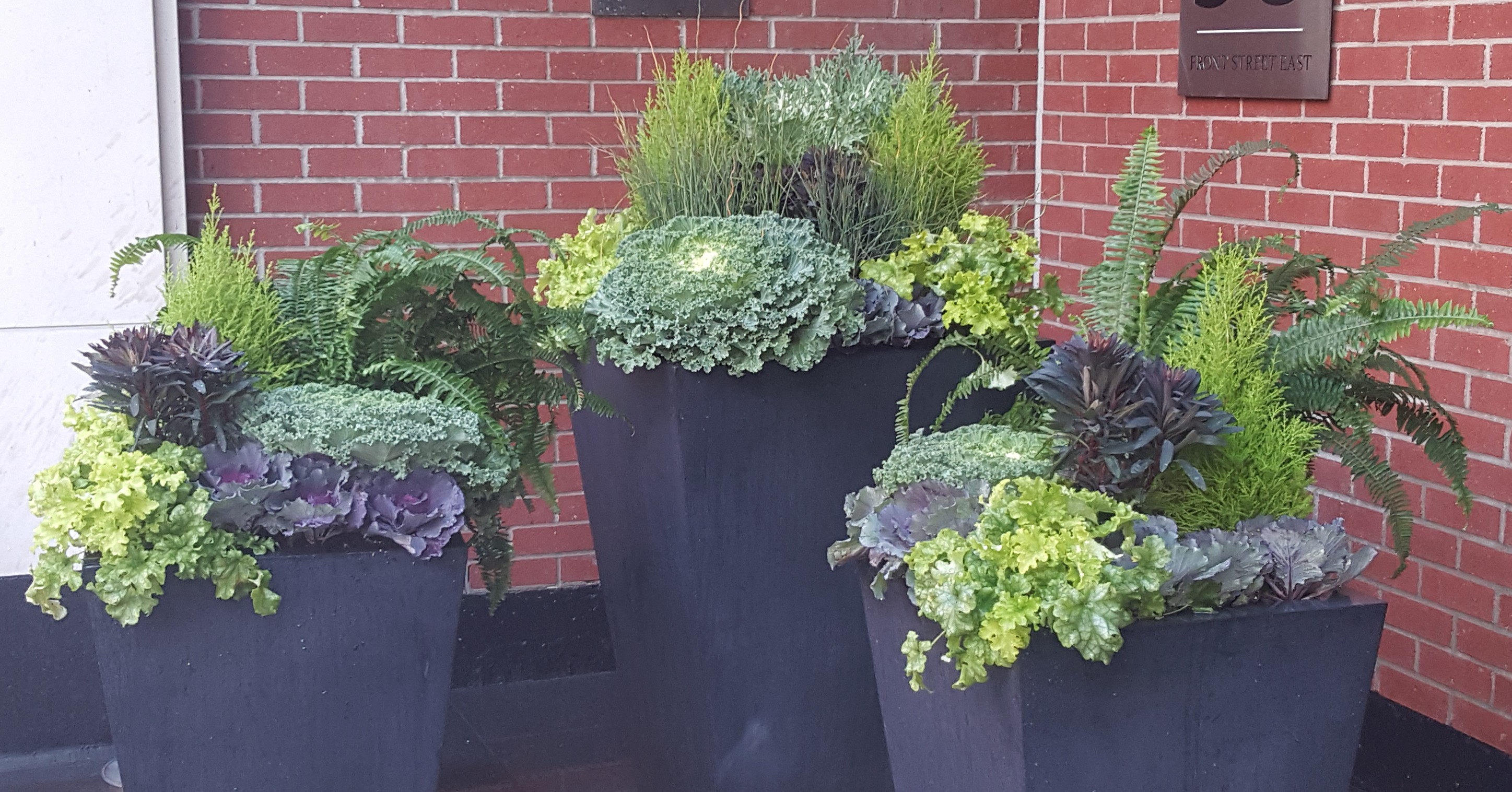 We will set a budget before we begin, based upon what you want and the size of your planter. A pair of 14" square planters will cost approximately $350-$450 depending upon fullness and accent choices. I have a $300 minimum per site. Note: You provide the planter.