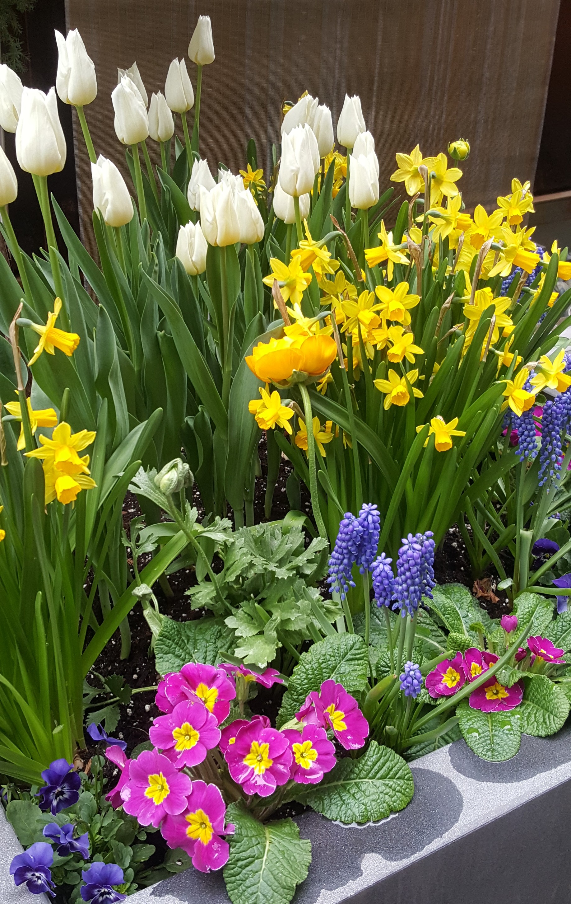 We all are! We plant forced spring bulbs - so they are ready to go right away. Spring flowers are incredible tough and will survive even an ice storm. Just resist the urge to touch any frozen plants.
