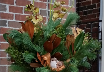 This planter needed to be short. Do you need a house number left visible? This is very Christmassy with silver and red.